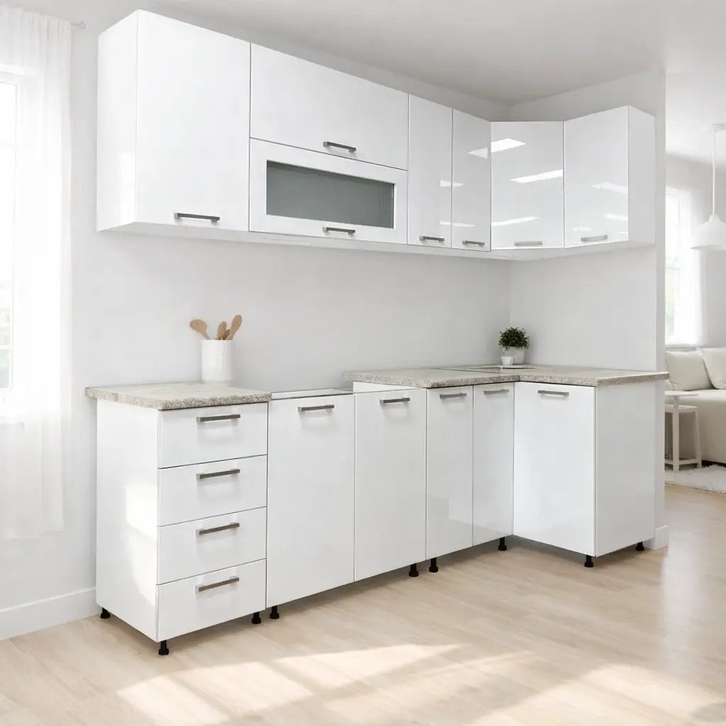 A-20 | კუთხის სამზარეულო | პრიალა ლამინატი | 2.40 მ X 1 მ